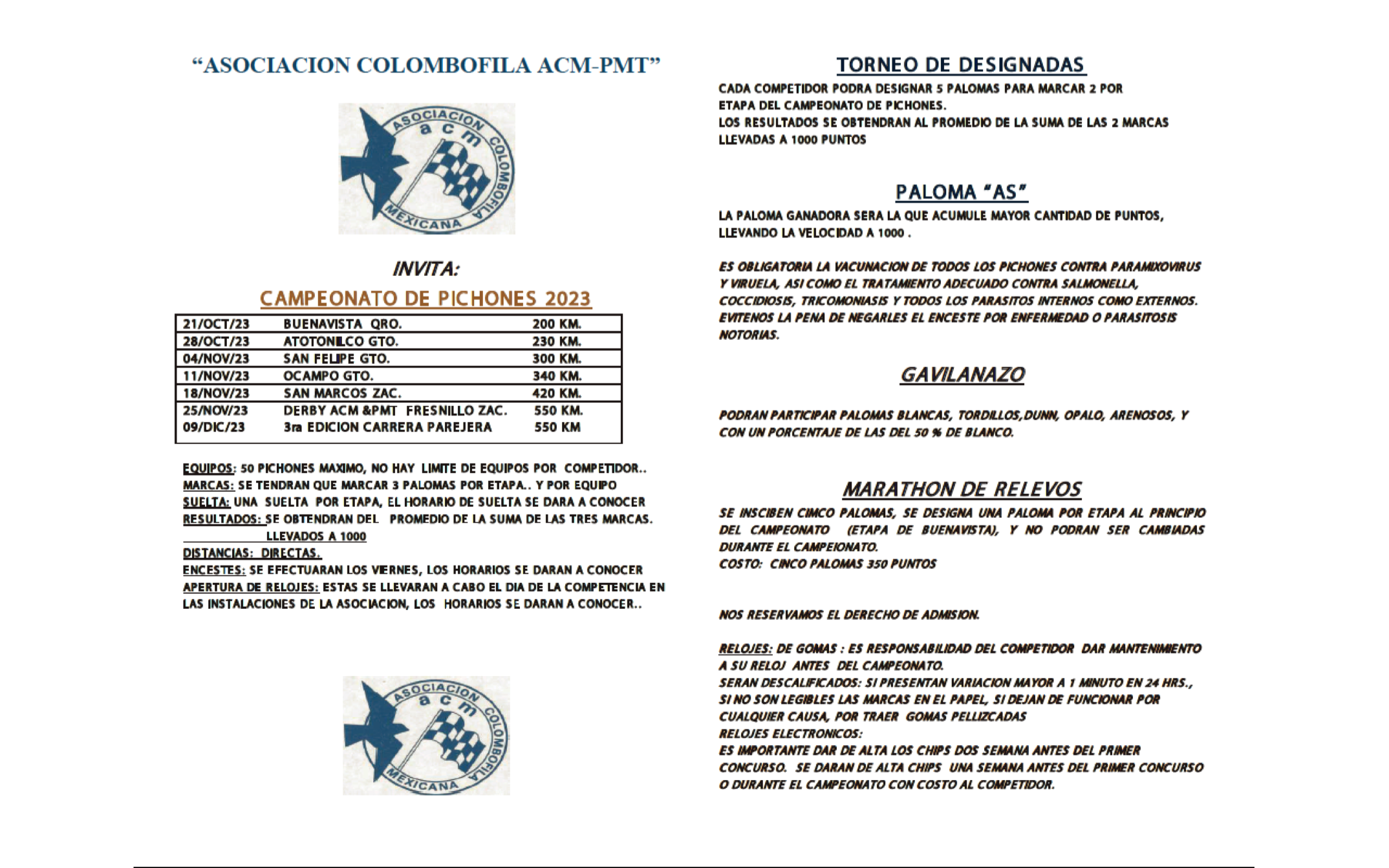 ACA Derby Pichones